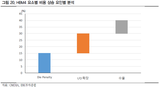 - 특히 HBM4(네 번째 세대 고대역폭 메모리)부터는 가격이 최소 35퍼센트 이상 높아져야 기존 수익성을 방어할 수 있을 만큼 원가 요인이 확대됨(다이 패널티·입출력 확대·수율 부담·베이스 다이 추가).